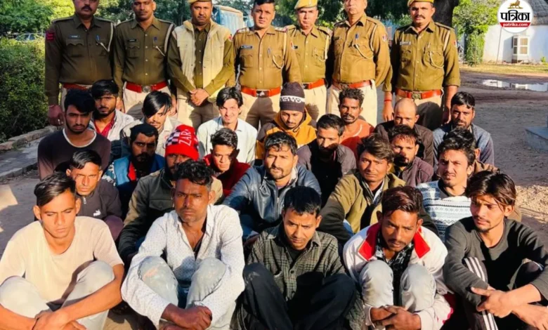 पुलिस ने आरोपी नागौर की नेहरू कॉलोनी निवासी राजेश कुमार नायक (37), भाकरोद निवासी मुकेश फरड़ौदा (24), बासनी निवासी मोहम्मद हुसैन (24), रोल निवासी सुरेन्द्र वाल्मीकि (26), कुम्हारी निवासी अर्जुन शर्मा (20), मूण्डवा निवासी दौलत तेली (30), रजब अली (19), शराफत सांई (20), सुभाष भार्गव (30), सोढ़ों की ढाणियां, सारणवास निवासी सईद खां (22), बड़ी खाटू निवासी अनोपचंद रेगर (30) को गिरफ्तार किया है। इसी प्रकार रेगरों का मोहल्ला बड़ली निवासी मुकेश रेगर (30), कलनी कुमारान निवासी मकबूुल मिरासी (19), आलनियावास निवासी सोहिल मिरासी (19), शीलगांव निवासी महादेवराम जाट (30), नागौर के नकास गेट निवासी अरुण वाल्मीकि (21), लुहारपुरा निवासी मोहम्मद राशिद (26), बलाया निवासी गोरधन मेघवाल (34), सारणवास निवासी आबिद कायमखानी (38), मूण्डवा निवासी बरकत अली (28), बड़ी खाटू निवासी रविकुमार रेगर (29), हिलोड़ी निवासी रसीद तेली (20), ग्वालू निवासी सुंदरसिंह राजपूत (30) एवं भडाणा निवासी पवन प्रजापत (19) को गिरफ्तार किया है।