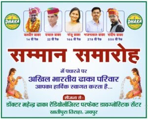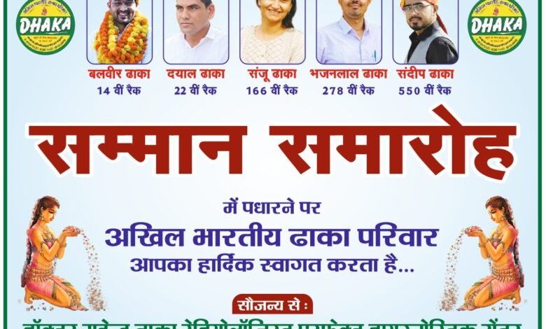 अखिल भारतीय ढाका परिवार का भव्य सम्मान समारोह 13 दिसंबर को जयपुर में आयोजित होगा