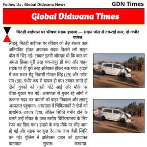 लाडनूं: मिठड़ी बाईपास पर आज एक दर्दनाक सड़क हादसा हो गया, जहां तेज़ रफ्तार कार अनियंत्रित होकर साइन पोल से जा टकराई। टक्कर इतनी ज़ोरदार थी कि कार बुरी तरह क्षतिग्रस्त हो गई।